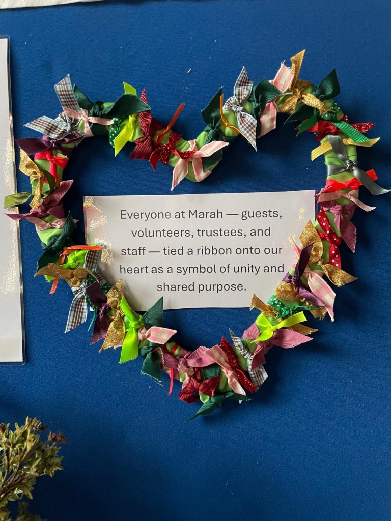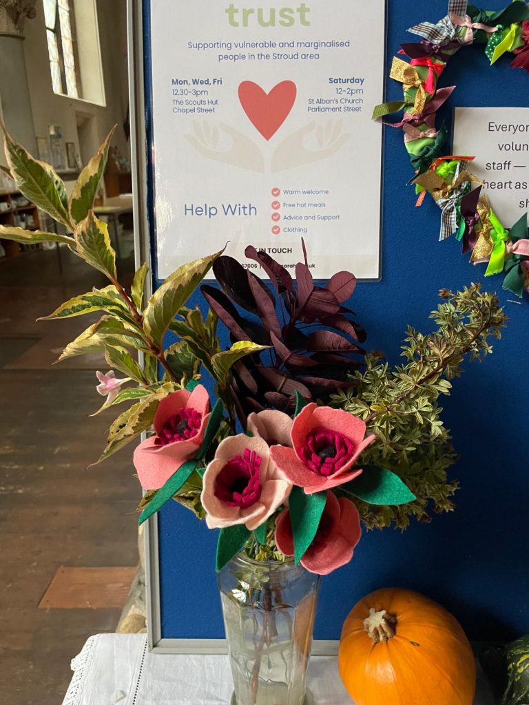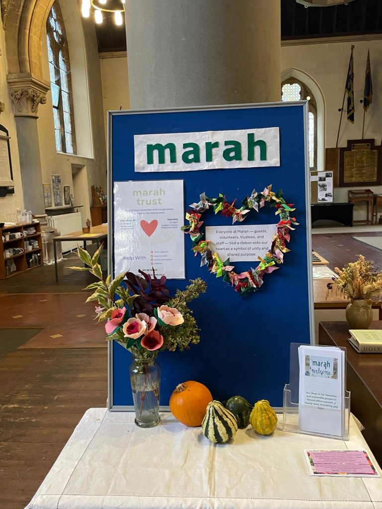 We were delighted to be asked to create a floral display for St Laurence’s Church in Stroud. Our wonderful volunteer Angela put together a beautiful display as well as asking everybody who comes to Marah to attach a ribbon to our heart in a display of unity and support. Thank you to everyone who took part and do go and see it while it is up!